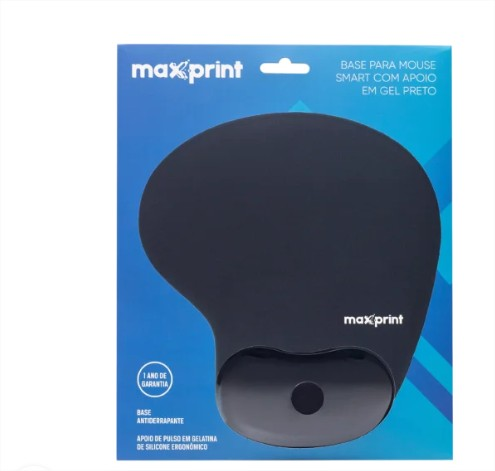 Pad Mouse Smart Maxprint 60000097 Preto: 29x23cm, apoio em gel de silicone, superfície em tecido, base antiderrapante. Conforto ergonômico para PC gaming e produtividade.